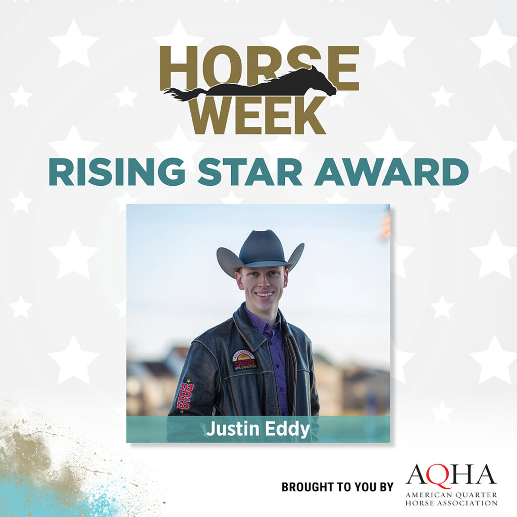 Justin Eddy is currently a sophomore at the University of Missouri studying agribusiness management. Eddy started showing horses when he was just two, when his parents took him to weekend open horse shows to compete in leadline on his first horse “Lacy”. He has since had the opportunity to grow as a leader and horseman through the AQHA industry, competing and leading from the highest levels as the 2020-21 AQHYA president and the 2022 AQHYA reining world champion with his horse Xtra Wimpy Voodoo.